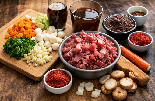 Boeuf Bourguignon is a timeless French dish that transforms simple ingredients into an elegant and deeply satisfying meal. Chunks of beef are gently slow-cooked in red wine alongside aromatic vegetables, mushrooms, and herbs, allowing the flavors to develop into a rich, velvety sauce. This hearty stew is a true expression of classic French comfort food, ideal for leisurely dinners, gatherings with loved ones, and make-ahead meals that become even more flavorful over time.